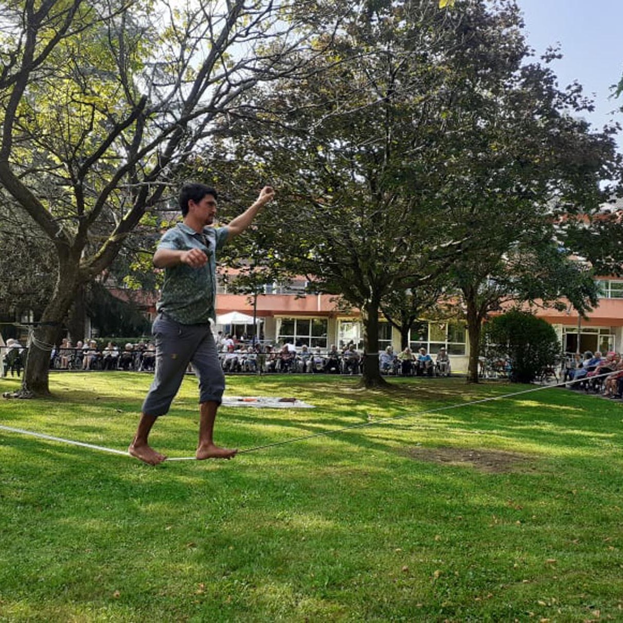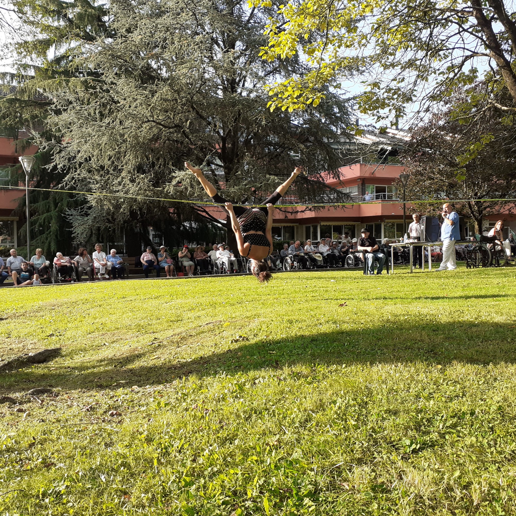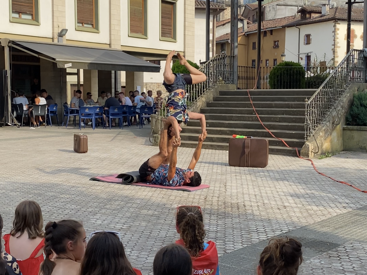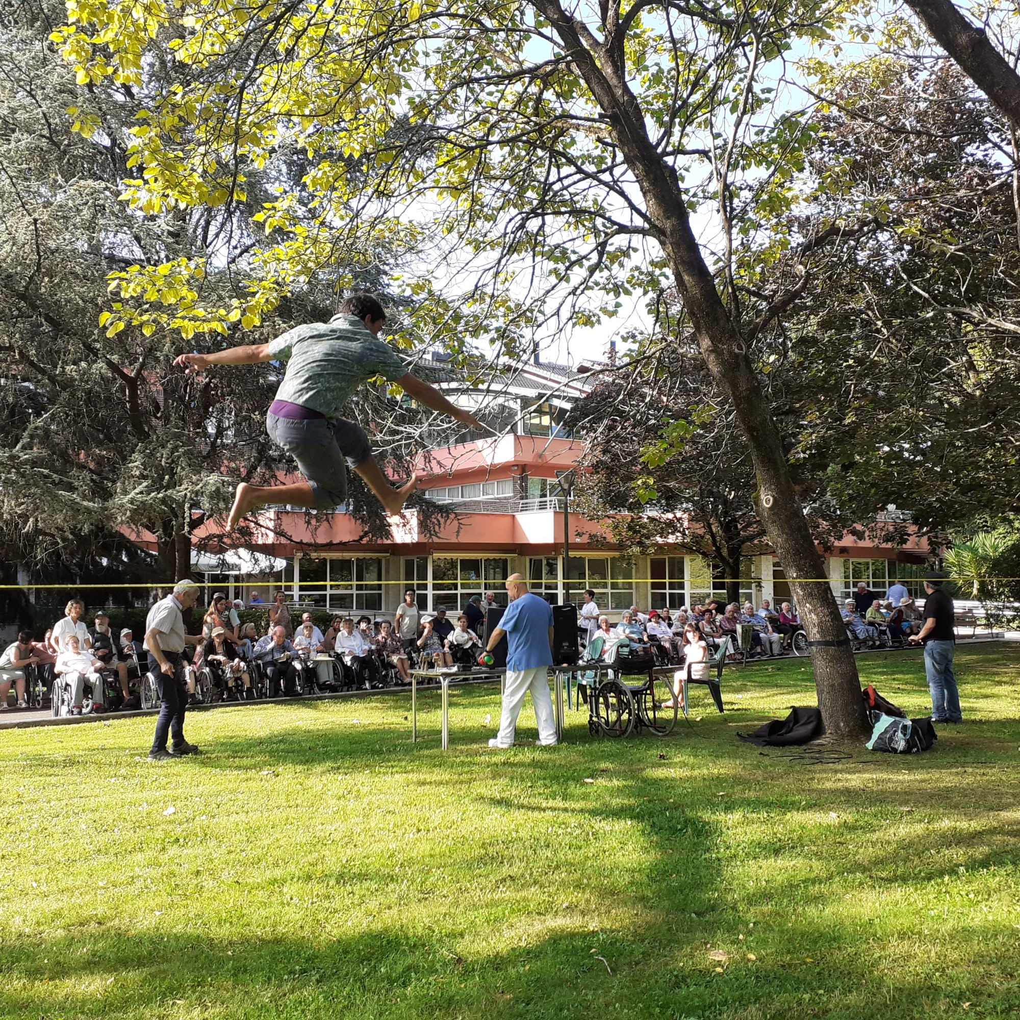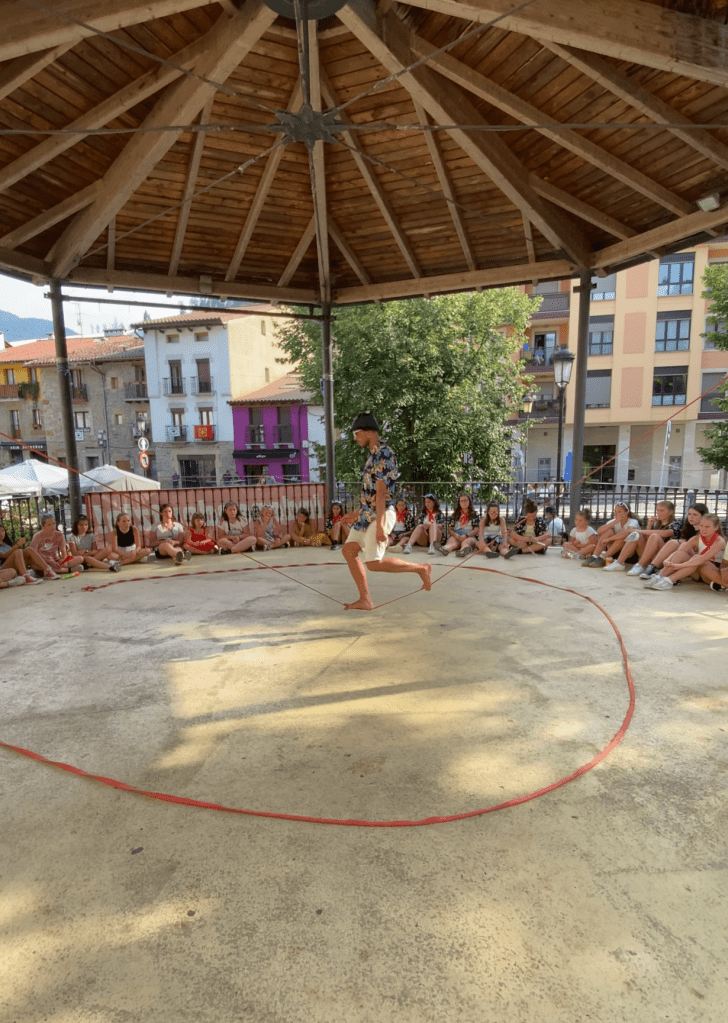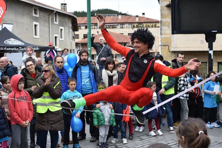 Dentro de la carrera por la salud llevada a cabo en el Txorierri, “Indartsu” un acrobata-corredor-forzudo realizó una muestra de sus habilidades en un espectáculo de 20 min. Al terminar realizamos un taller de malabares y slackline para que todos los que quisieran pudieran participar.