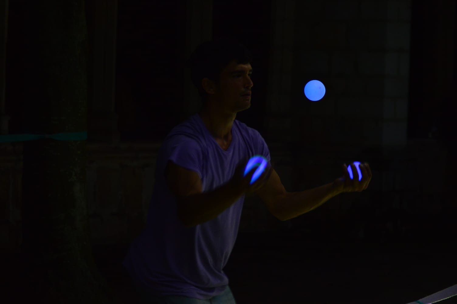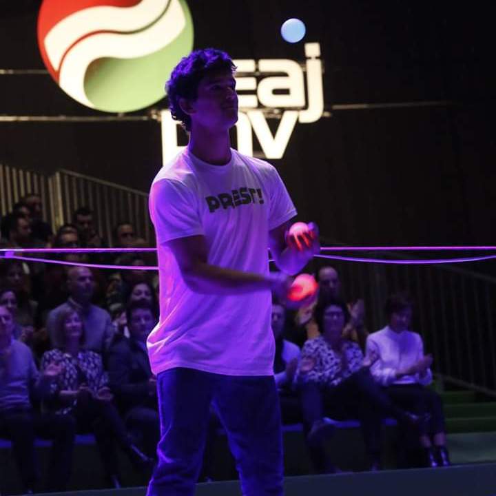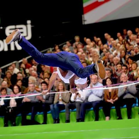 Espectaculo de 5 min para dar comienzo al miting del Pnv. Malabares de luz y muestra de saltos y acrobacias sobre la cinta de slackline iluminada con una line de luz Led.