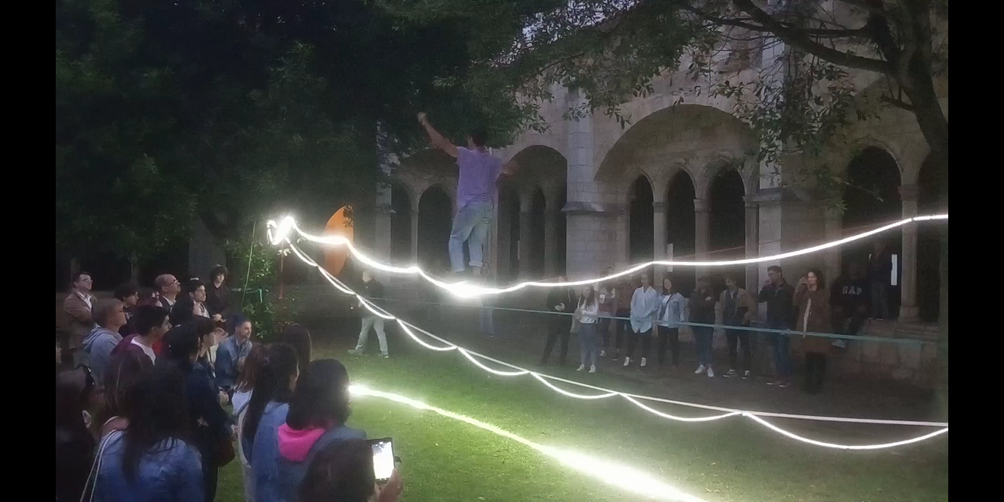 Evento donde compartimos espacio junto a 5 compañías diferentes ofreciendo un espectáculo de malabares de luz y acrobacias sobre slackline dentro de la catedral de Santander.