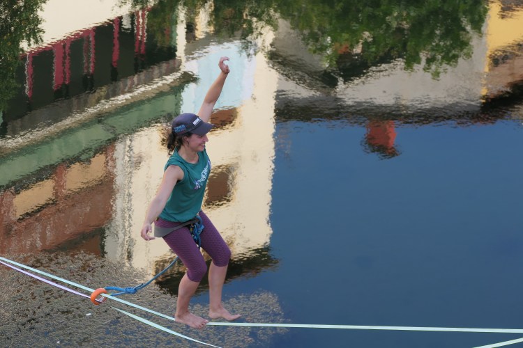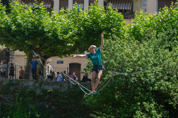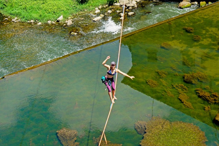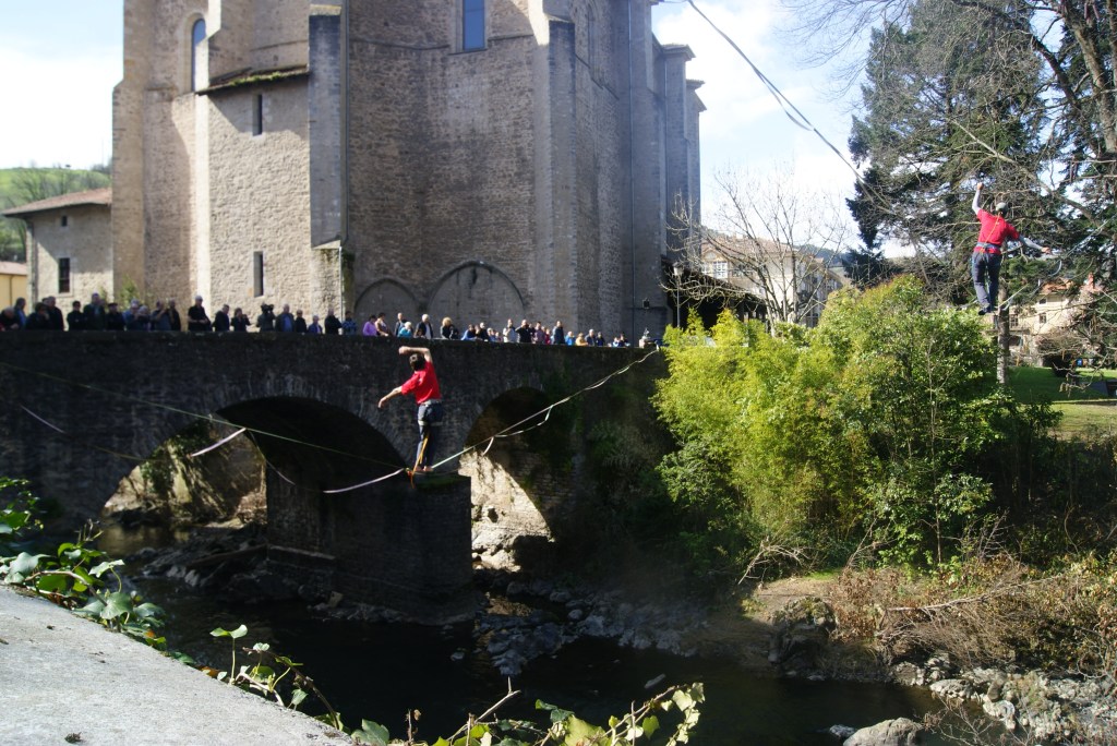 Pol-Polen Mendi Astearen barruan, slackline erakustaldia egiten jardun dute dozena erdi bat lagunek eguerdian. Bergara bertakoak, Soraluzekoak eta Bilbokoak ziren, Usondo eta Bideberri artean, Deba ibaia alde batetik bestera zeharkatzen ahalegindu direnak.