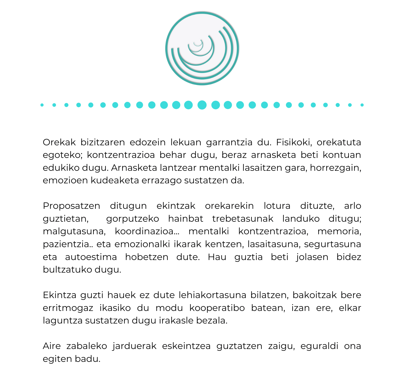 Escuela de equilibrio Oreka eta Zirko Eskola. Enseñanza y consciencia de las artes del equilibrio. Diziplina anitzeko konpainia gara oreka-arteen irakaskuntzan eta kontzientzian.