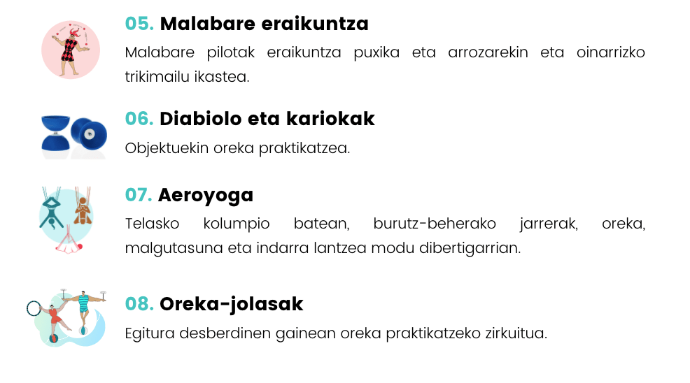 Adin eta maila desberdinetarako egokitutako tailerrak.